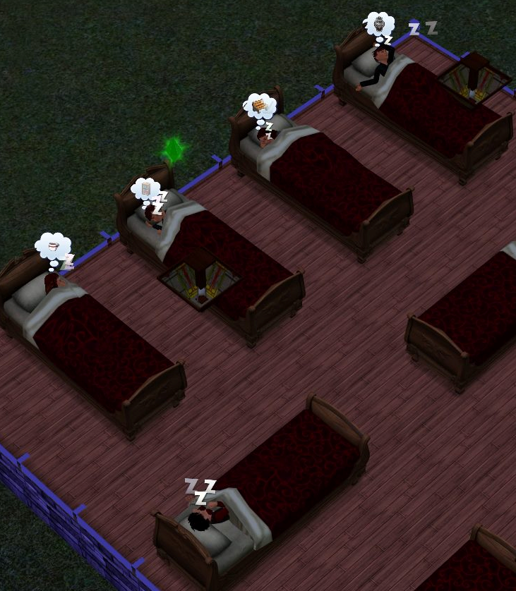 After the butler’s death, I decided that I needed to focus on just one Trallop at a time. I plopped down four pre-fab homes in the neighborhood, spent a couple of days radically modifying them, and moved each sibling in one-by-one. I ensured that the three siblings I wasn’t playing had plenty of money (yes, I use the simolean cheat code :P) and decided on Ginni being the one I wanted to play first, since I had never played an Evil trait sim before.