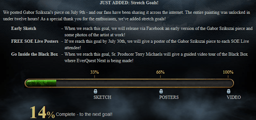 Sony Online Entertainment has added additional stretch goals to EverQuestNext.com. These include an early sketch of Gabor Szikszai’s reinterpretation of the original EverQuest art, posters for SOE Live attendees, and a VIDEO tour of the “black box” where EQ Next is being made. Spread the word to your fellow gamers to make sure they visit the web site and like, follow, and/or share EQ Next’s social media accounts!