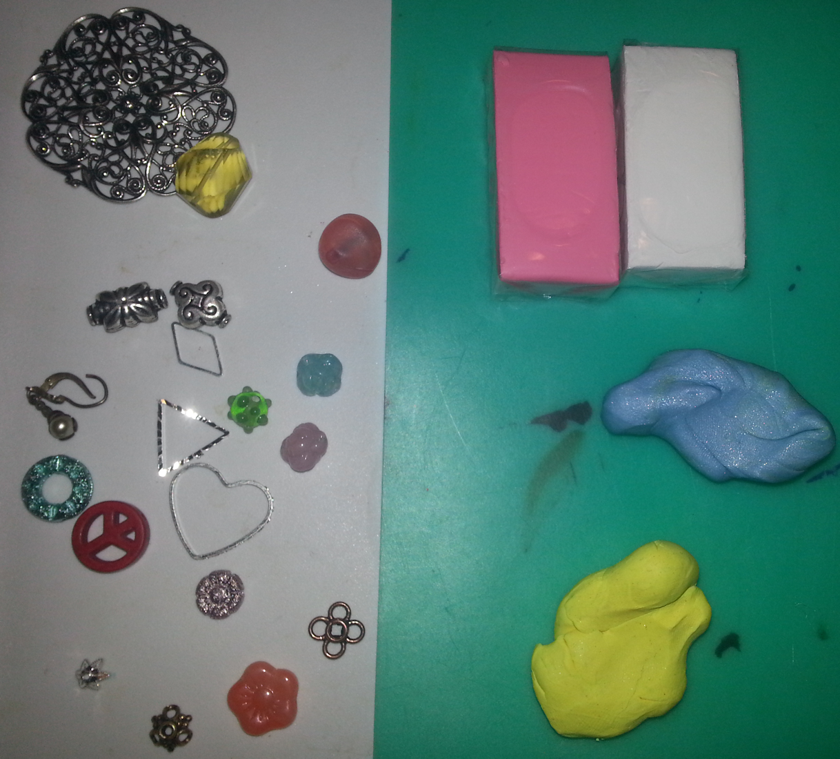 The basic tools you need for this project is clay and some random baubles (preferably oven-safe ones). I ended up selecting a variety of random beads and metal findings, but you could also incorporate other objects from around your home (like bolts, stranded jewelry pieces, etc) as well. It will be easier if all of your objects are oven safe, but if not, you can make do with glue.