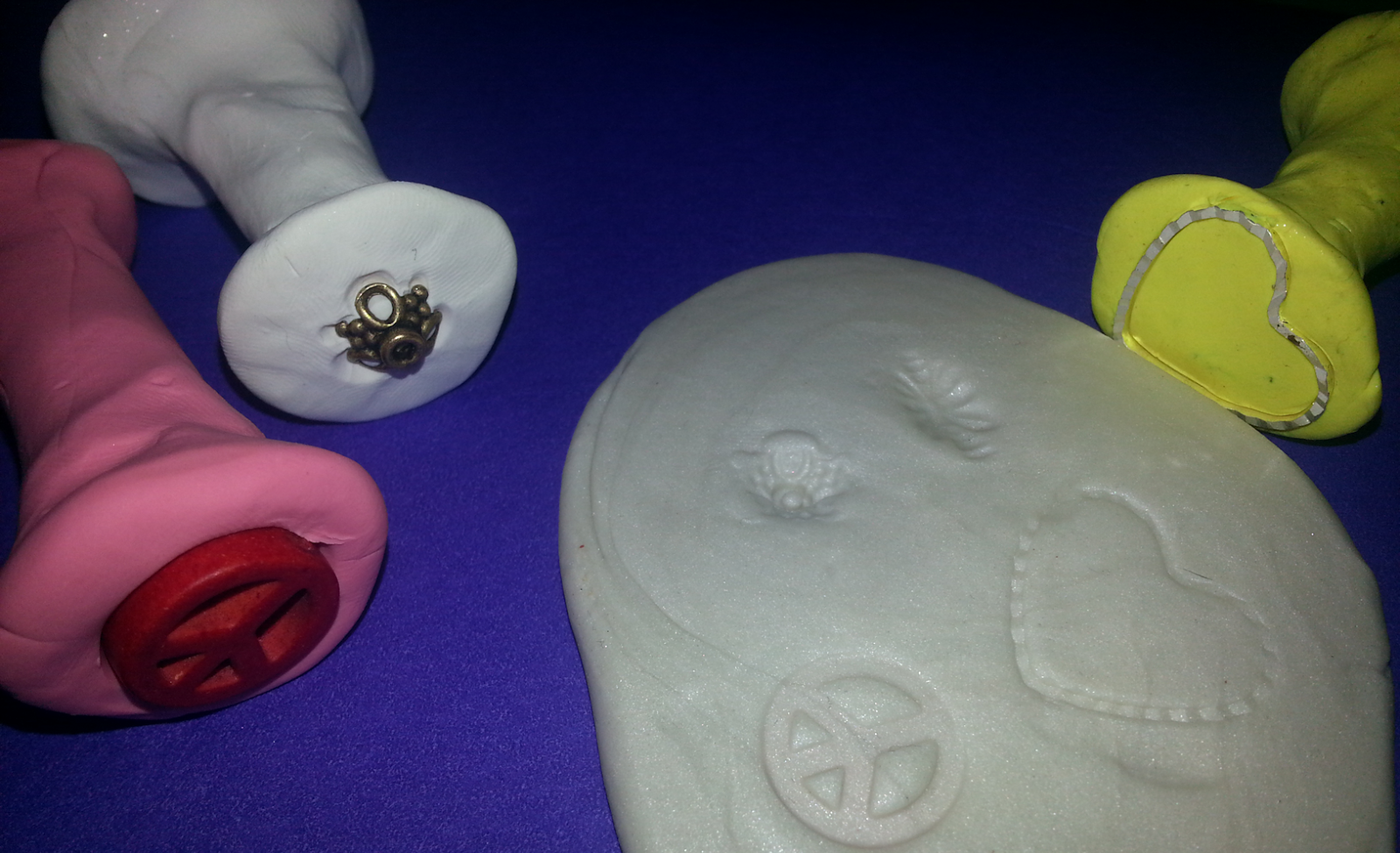 Roll out some of your clay and check out what impressions your objects make to make sure you’ll like the final product. I didn’t end up using all the objects I grabbed since some of them didn’t make a very good impression.