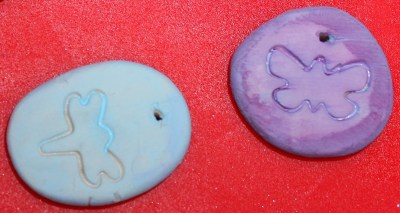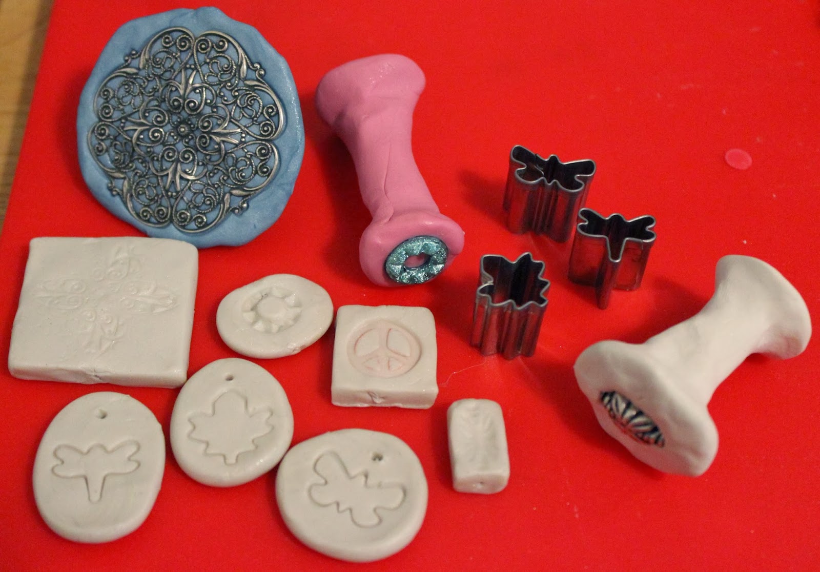 While getting out my clay I saw my shape cutters I had gotten when I made clay beads last summer. I decided to use the blunt end of a few of these and make imprints that way, and I love how they turned out! If you do this, make sure you hold the sides when pressing down so you don’t cut yourself.