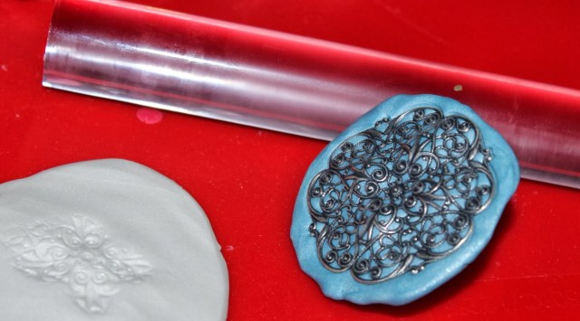 My favorite tool, from its appearance, is the big metal filigree piece. It makes a pretty imprint, but it’s very hard to see the details of its imprint from further away. I think it still is a pretty piece, anyway.