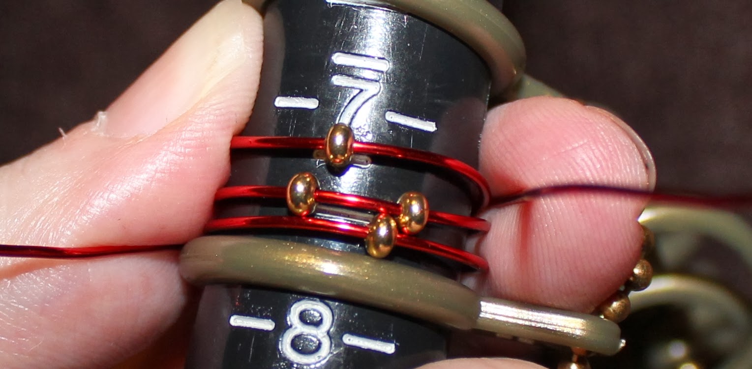 For this project I used my mandrel, 20 gauge wire, and a few beads (I want to say they’re 3mm).