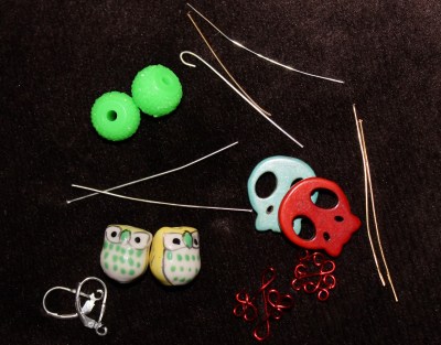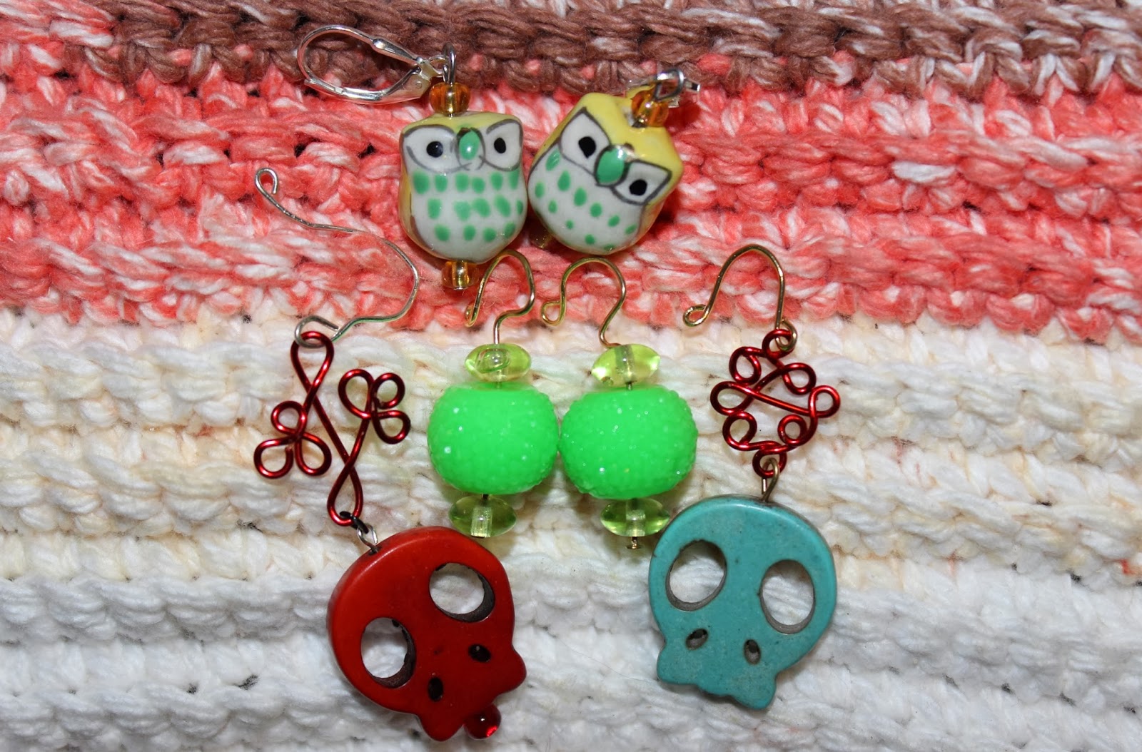 I checked Pinterest over the weekend and found a few different styles. The three major ones I found were leverback findings (similar variation here), curved wire findings, and safety pins. Of the three, I made stitch markers with leverback and curved wire findings. I also used some random chunkier beads I had, including the yellow owls shown in one of those linked pins, and a couple of wigjig wires that were abandoned.