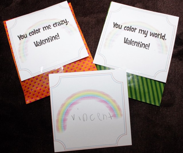 Today’s project was Homemade Valentines. It was supposed to be Bubble Wands, but I swapped the two since one of my kids needs to take his Valentines in early on Monday.
