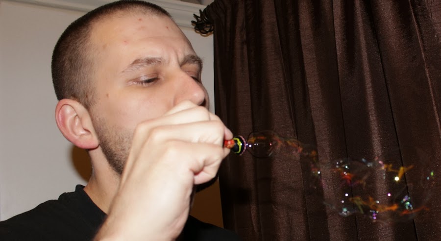 I ran into the problem of being unable to take a picture while blowing bubbles, so once again my husband kindly obliged.