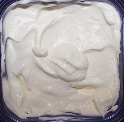 | Cream cheese, sugar and the two extracts, prior to mixing. I forgot to get a pic of this mixed before adding the cream, sorry! |