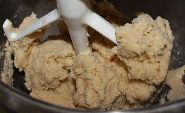 | After mixing in the flour, baking powder and salt. |