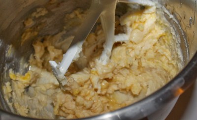 | After the butter and sugar were creamed well. |