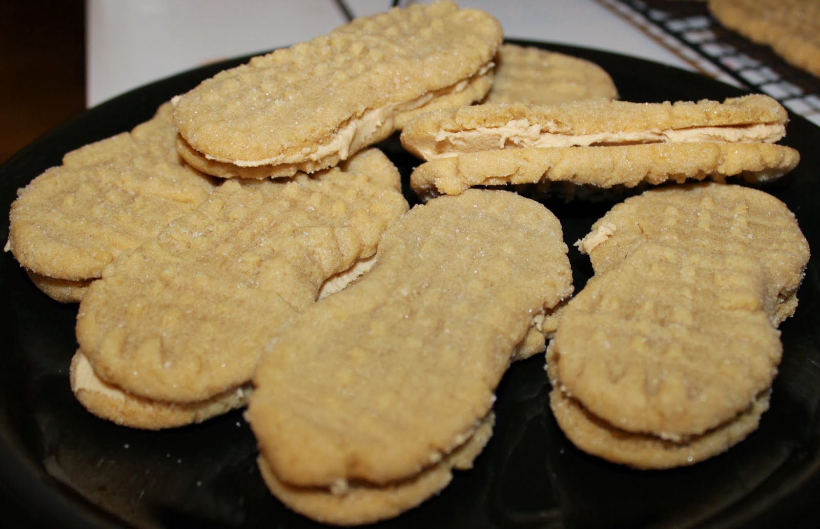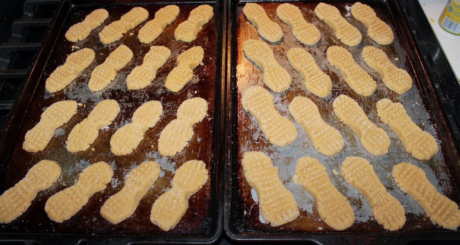 Today’s project was Homemade Nutter Butters. The recipe I used was from the Cookies and Cups blog. The only modifications I would do next time is use less than one-inch rolls (mine came out huge compared to hers) and one cup less powdered sugar in the filling (the taste is close, but too sweet). Our yield was about 33 sandwich cookies and they taste great. Pictures of the creation process are below!