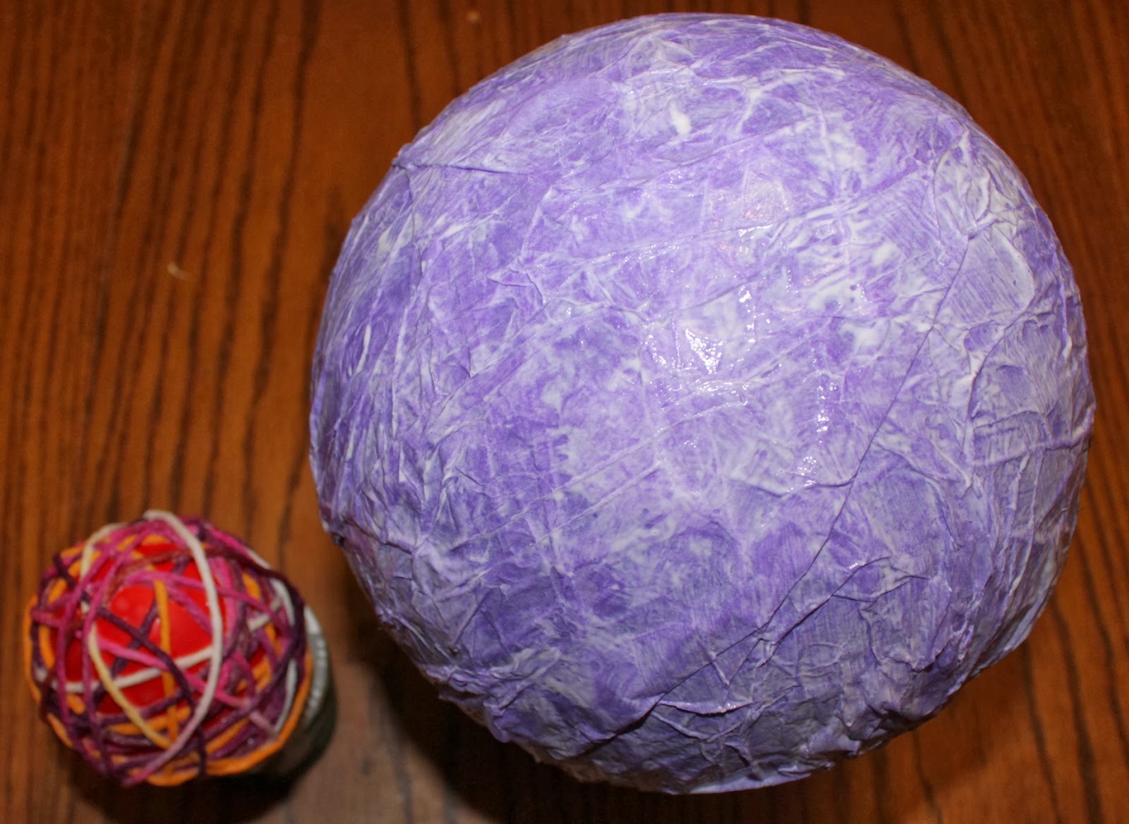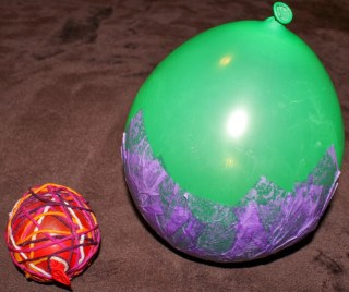 Here’s the balloon from the yarn egg. You can see where the wet glue had clung to it. The bottom part of the egg shown here was where it was still wet, though that doesn’t translate well in images.