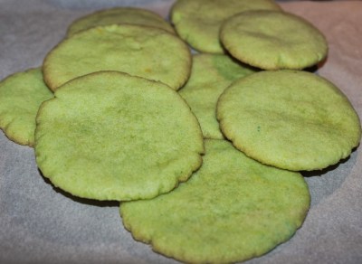 In case you’re curious why the cookies look a bit green: that’s because they are. I used some of my blue and yellow Edible Glitter in the mixture, and it tinted the dough green!