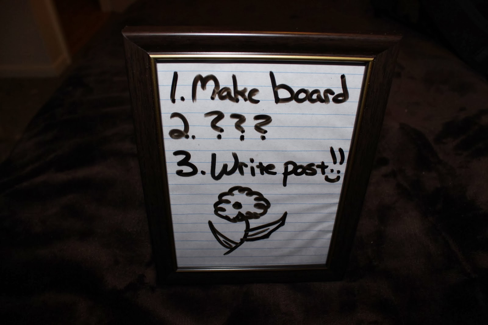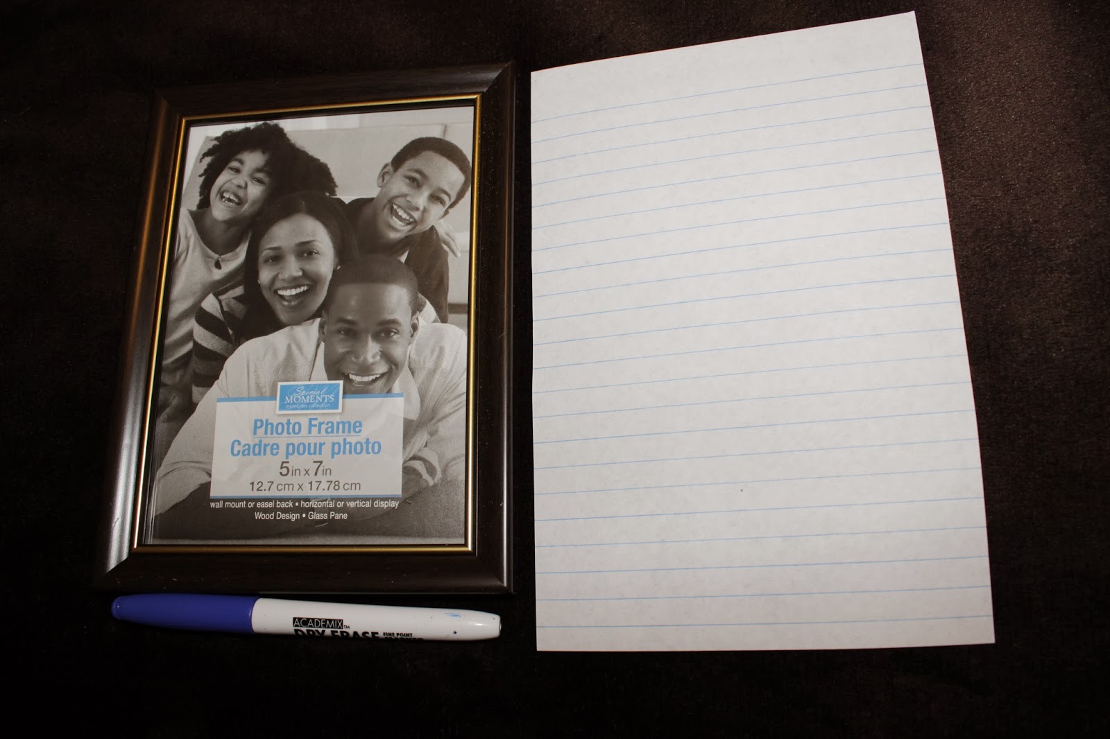 Today’s project was a Dry Erase Frame. This used a dollar store frame, a single piece of notepad paper and a dry erase marker.