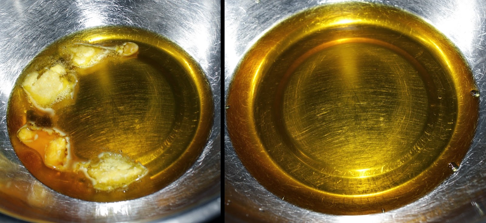 - Melt the beeswax, coconut oil and shea butter together in a double boiler, stir well