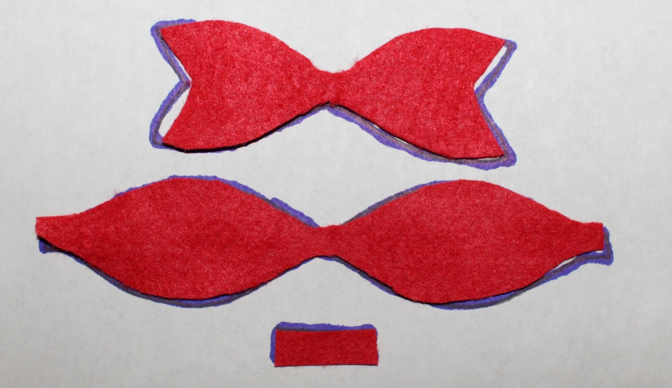 Today’s project was a Felt Bow. I did this like the Paper Bow project, using the same template, but made the center-wrap section a bit longer since felt is thicker. A soft felt worked fine, and afterward I attached it to a covered hair clip, though it would also look nice as a present topper.