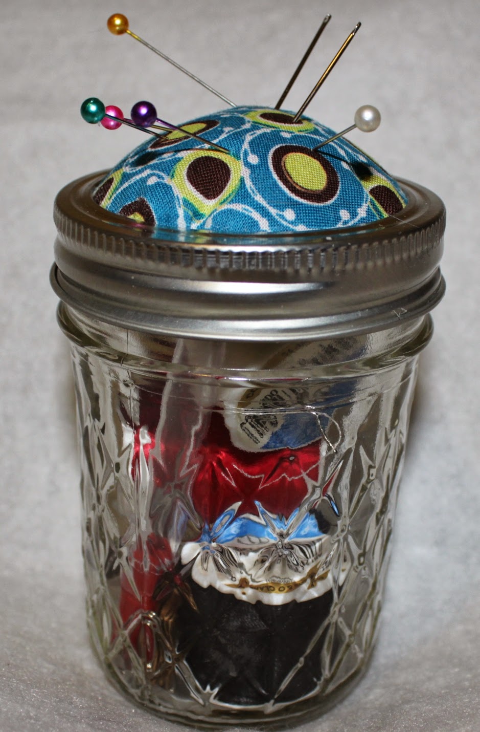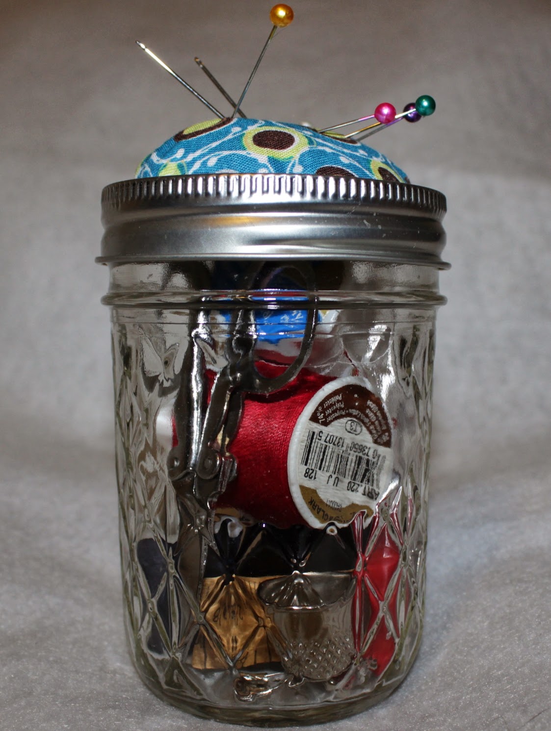 Today’s project was a Mason Jar Sewing Kit. This is one of those DIY projects I see float by often on Pinterest, so I figured I’d take a stab at it.