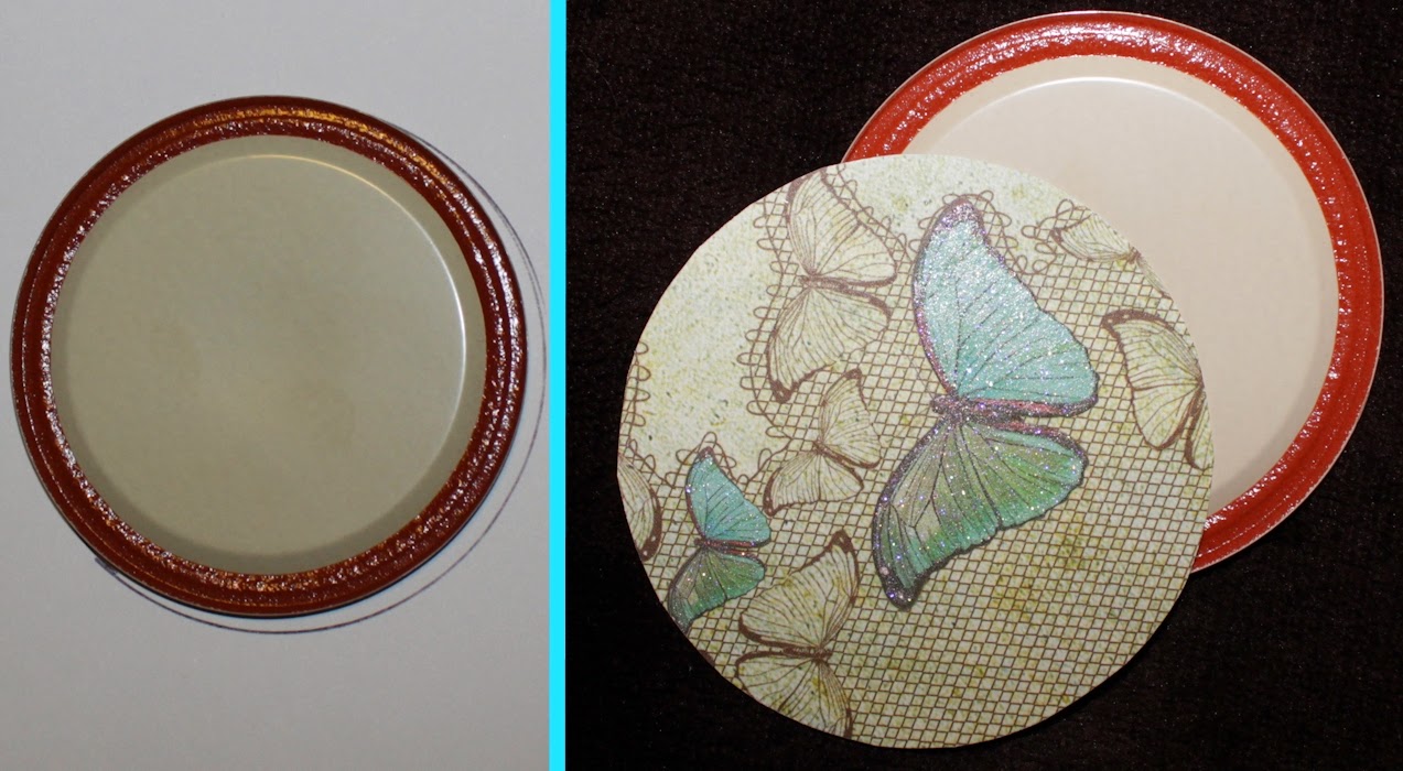 | My lid was a big mess because I tried to use Mod Podge before hot glue. Save yourself the trouble and just stick with the hot glue. 🙂 |