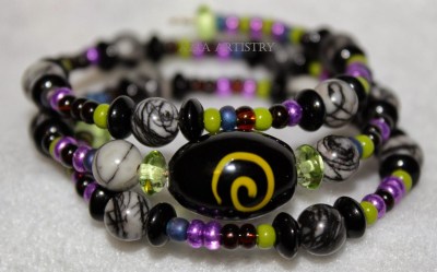 March Madness: Spunky Punk Memory Wire Bracelet March 18, 2014December 16, 2016Posted in crafts Today’s “Spunky Punk” bracelet features various mixed black lampwork beads with an eclectic mix of 6/0 Czech seed beads. Share this: Click to share on X (Opens in new window) X Click to share on Facebook (Opens in new window) Facebook Like Loading...