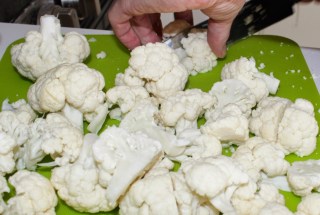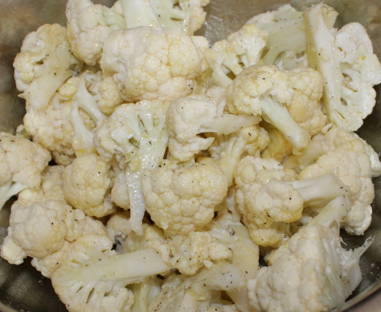 Preheat your oven to 400°F. Toss the cauliflower florets in a bowl with the olive oil. Add the kosher salt, garlic powder and 1/4 tsp of the pepper, then toss it more in the bowl. Give your baking sheet a light coating of cooking spray then spread the florets out on the sheet. Bake 25-30 minutes in the oven until fork-tender and lightly browned (we did 25 minutes). Once done, reduce the oven to 350°F.