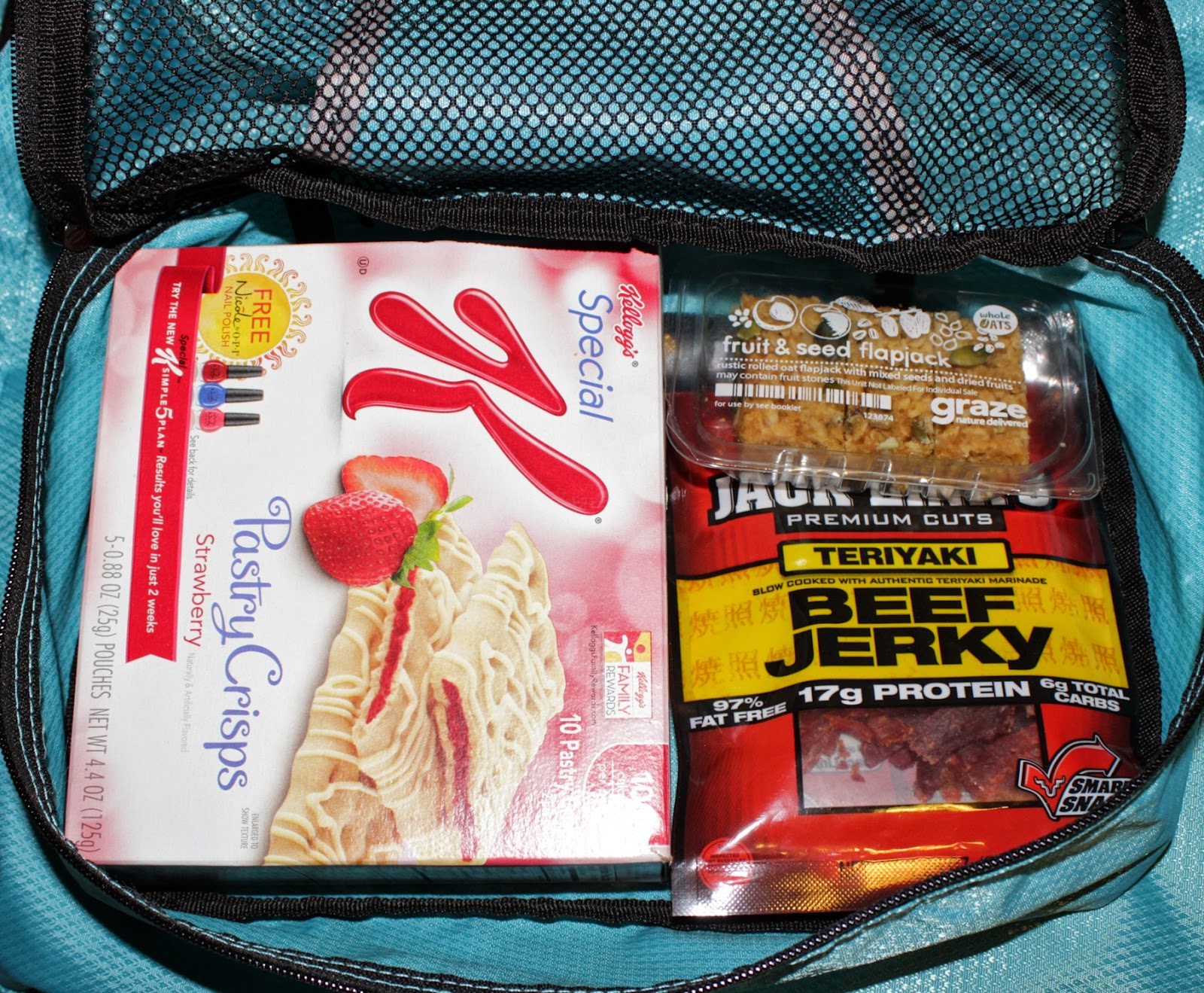 After my first convention I learned an important lesson: bring snacks! I do this now for any trip I take. If I don’t have time for a full meal, I have a bigger bag (above) to graze from while stopping by the hotel room. When I’m on the go (on a plane, in the airport, sitting around in panels, etc) I carry a smaller bag about the length of my hand (below) with just a few snacks in it. It stuffs into a walking bag easily and it’s much better than passing out from lack of caloric intake.