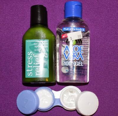 I don’t use too much lotion or aloe while I’m traveling, but it’s nice to have it just in case. A contact lens case saves me from carrying two travel-sized bottles around that I’ll barely use. NOTE: If you use contact lenses, mark your actual case quite clearly!
