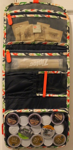 It’s a bit awkward in size when packing it in the luggage (the top is much narrower than the bottom), but I decided to continue using that for toiletries, which means repurposing the new case. I’m bringing a coffee maker with me to Vegas, so the new case has become a traveling coffee depot for me!