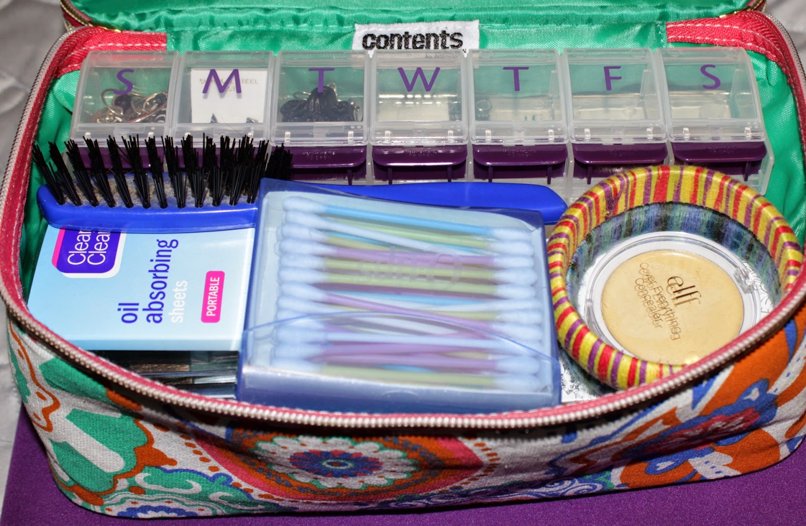 I don’t wear a ton of makeup but when you’re traveling you never know when it might be appropriate. I got a double tier train case (similar) not just for storing some makeup, but also hair accessories, jewelry, sprays and other miscellaneous essentials.